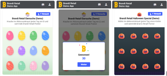 Veranstalten Sie für Ihre Kunden spielerische Aktionen, bei denen die Kunden Punkte, Prämien oder Guthaben gewinnen können und so zusätzlich zum Einkauf belohnt werden. Mehrere Spielarten sind möglich und individuell anpassbar. So schaffen Sie zusätzliche Anreize für wiederkehrende App-Nutzung und stärken die Kundenbindung.